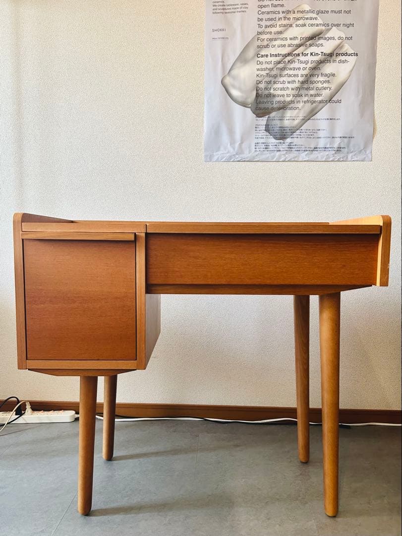 【希少モデル】オールドカリモクライティングビューローデスクになります。クラシックなデザインが魅力です。サイズ: 高さ 約105cm × 幅 約88.3cm × 奥行き 約47cm(取っ手含み)引出内寸: 高さ 約7,7cm × 幅 約32.8cm × 奥行き 約32.2cm棚板: 幅 約38.5cm × 奥行き 約35cmデスクまでの高さ 約66.5/69.3cm(下/上)デスク幅 約78.5cm※素人採寸のため多少の誤差はお許しください。展示品のため小キズスレなどはありますが、状態は良好です。(17-18枚目)神経質な方はご遠慮ください。またプロフィール欄もご覧ください。※直接引取対応します。送料分お値引きになりますので、コメント欄にてお知らせください。神奈川県横浜市南区真金町※メルカリ以外でも販売している為、在庫切れの場合が御座います。ご購入前にコメントをいただければ幸いです。予めご了承下さいます様、よろしくお願い致します。#オールドカリモク#ライティング#デスク